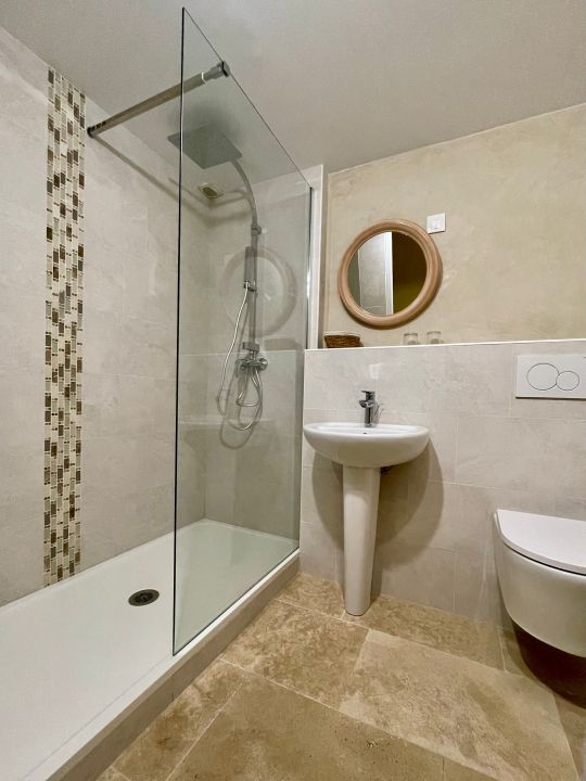 Esta habitación tiene capacidad para 1, 2 o 3 personas. Puede disponer de 1 cama doble y 1 cama individual, o bien de 3 camas individuales. El cuarto de baño y el aseo son independientes. La habitación da a la plaza. Muy tranquila, con sol por la mañana. Certificación Gîtes de France® 3 espigas.